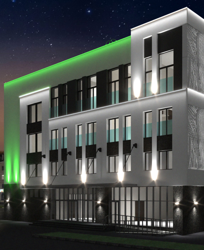 Разработка проекта подсветки здания отеля, расположенного в городе Москва.