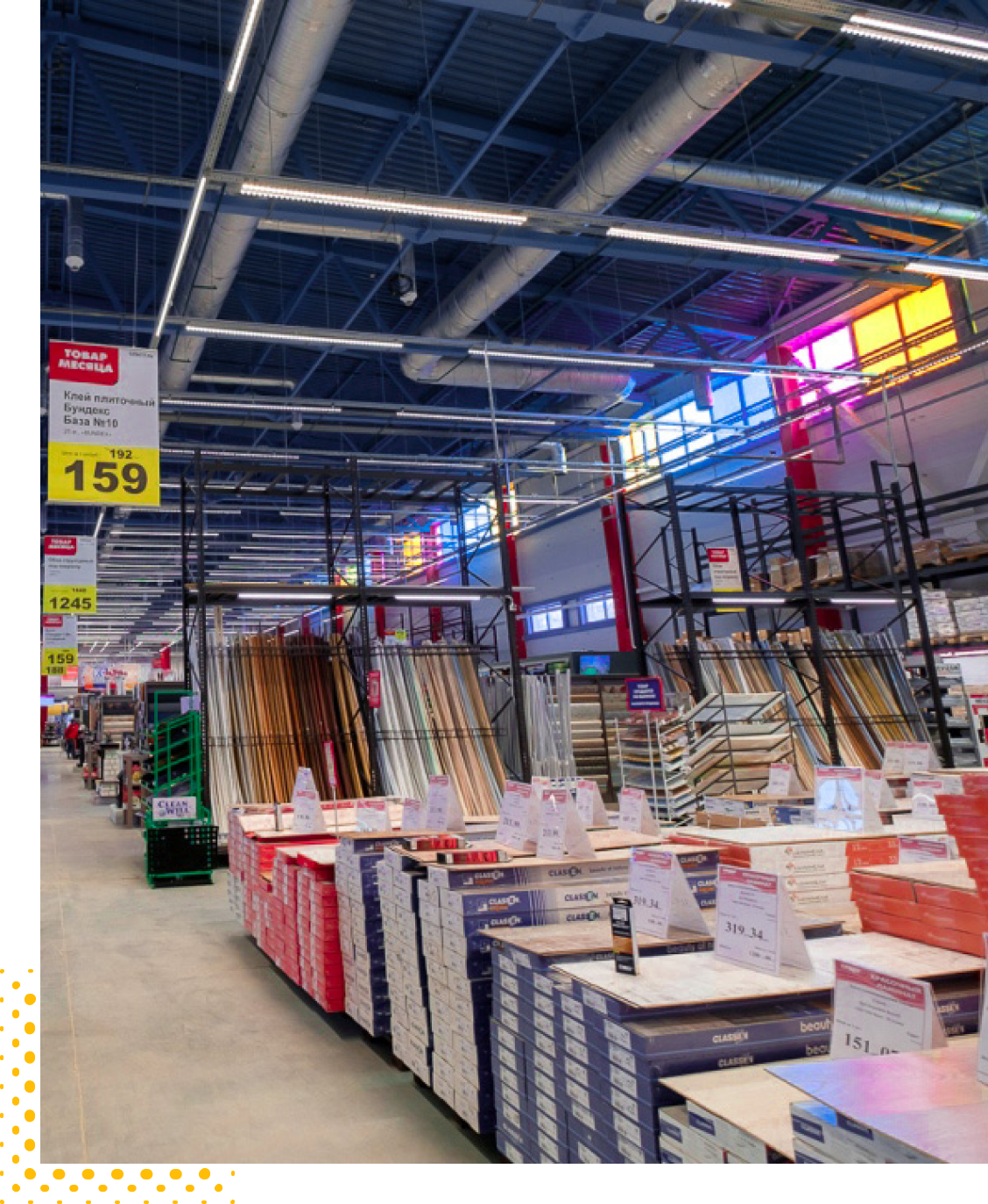 В рамках проекта было установлено освещение торговых площадей магазина в г. Кстово.